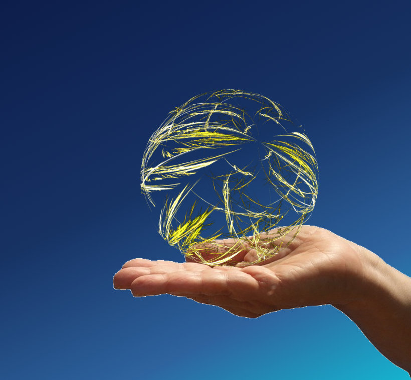 Hand haelt Fraktalball