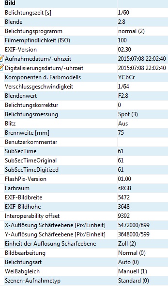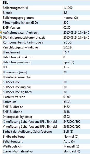 Foto-Workshop Basics 1 Aufnahmedaten
