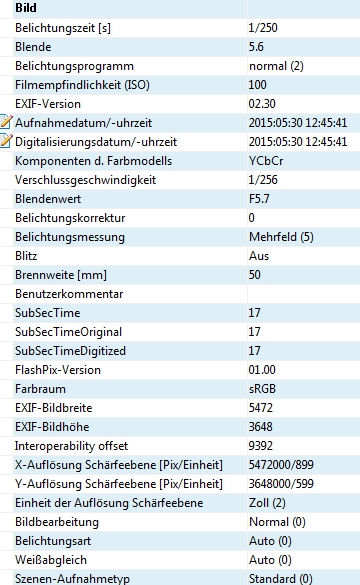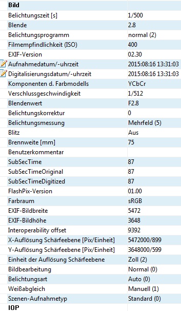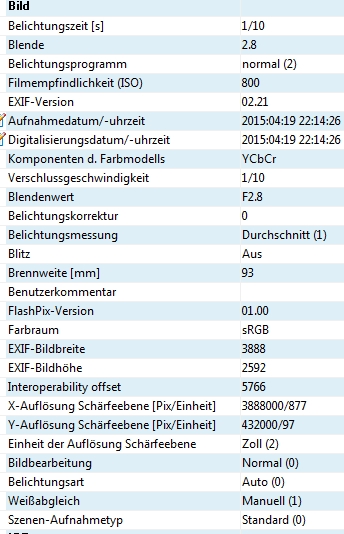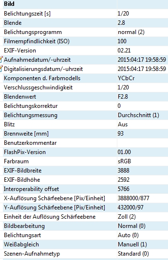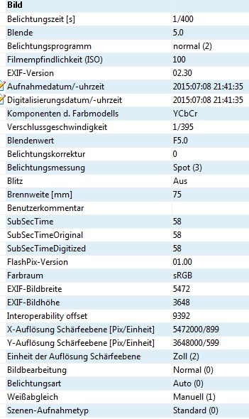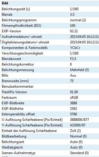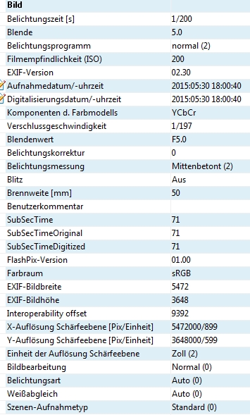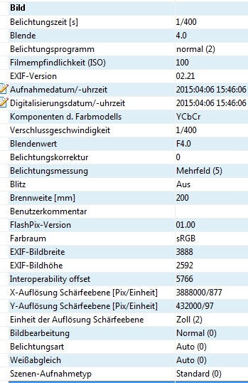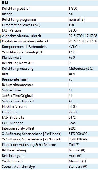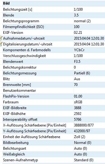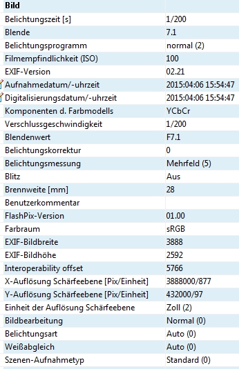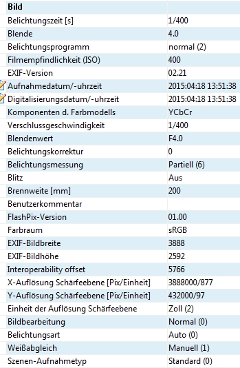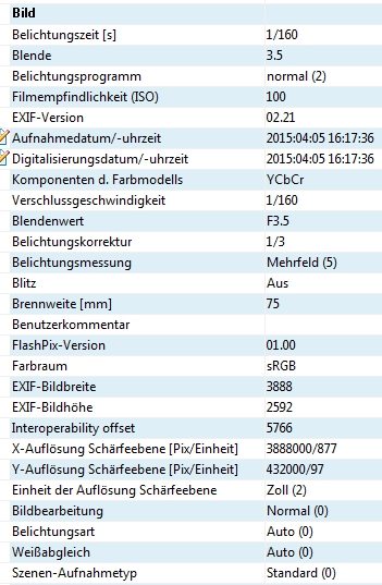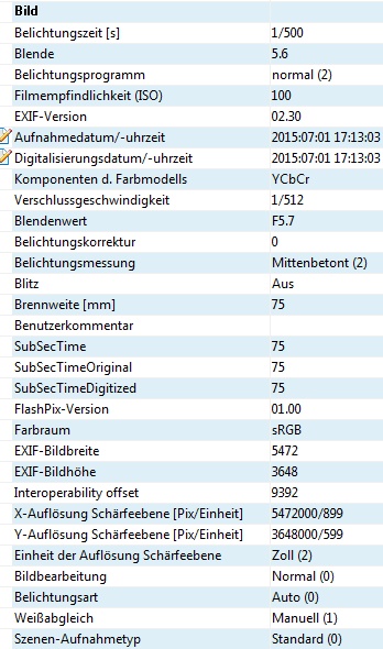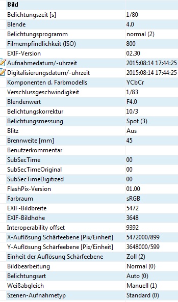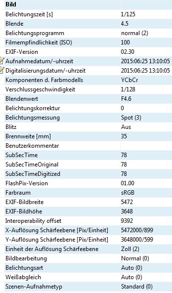 Anmeldebild EXIF