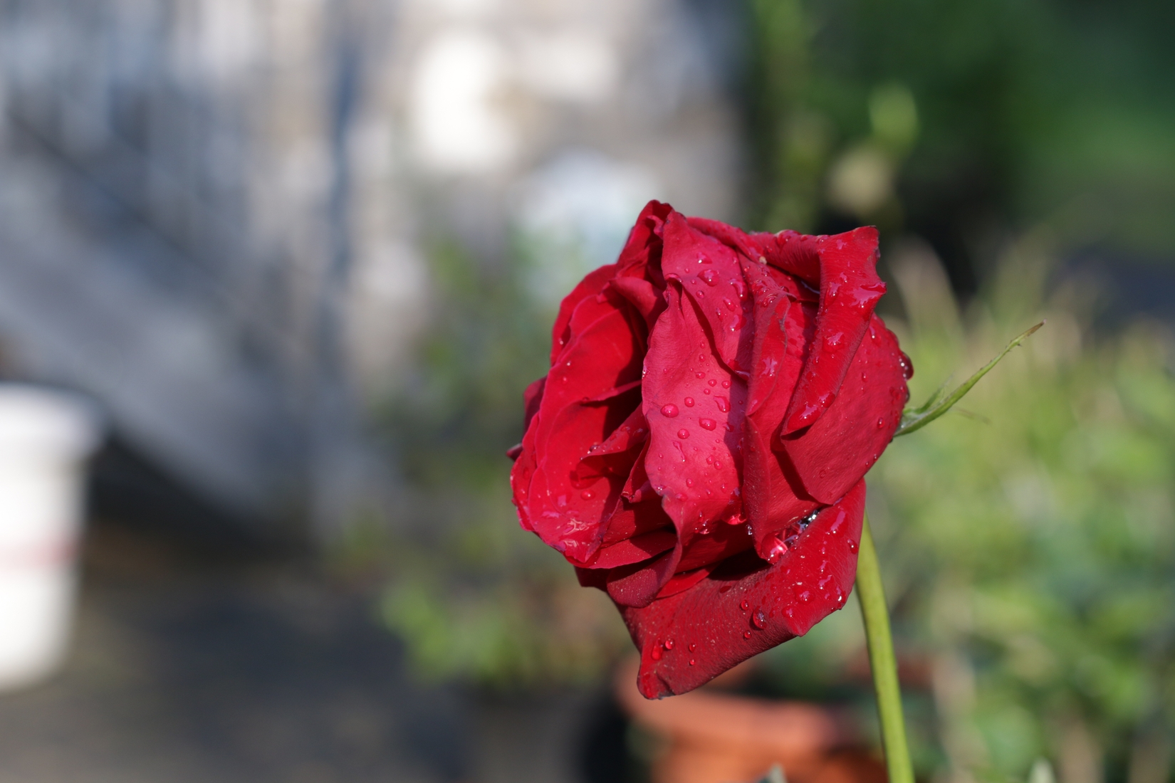 EOS 70D Wassertropfen an Ballonblume Mittenbetont