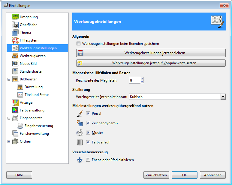 Werkzeugeinstellungen