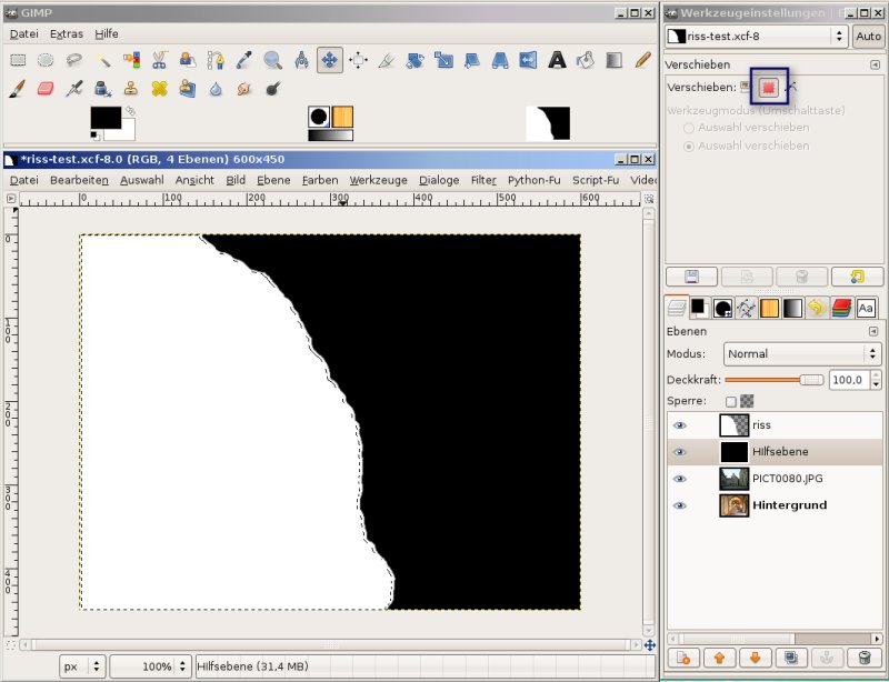 markierst du nun eine Linie an der dein Bild gerissen sein soll. z.B. so: